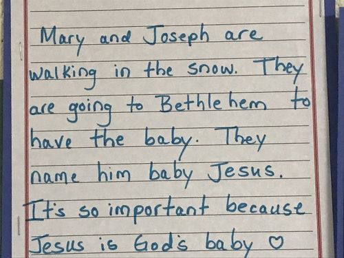 Read more stories from the children in the early childhood center hall outside of the preschool classroom.