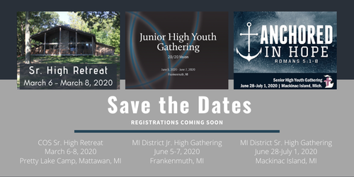 We are hosting a Sr. High youth retreat on March 6-8, 2020 at Pretty Lake Camp in Mattawan, MI. All Sr. High youth are invited as well as any friends you'd like to invite. This is a student-planned retreat, and much of it will also be student-led! The youth have been planning and are very excited about time together.