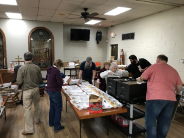 After making and putting food into the carryout trays, folks then come to the front door, receive their trays, and proceed back to the sidewalk. We have a dedicated person taking prayer requests and then we pray for the community at the end of the evening. If there is an immediate prayer need, we will take them into the fellowship hall and pray together, standing six feet away. We are constantly evaluating and reevaluating our process, as we always desire the safety and health of our people.