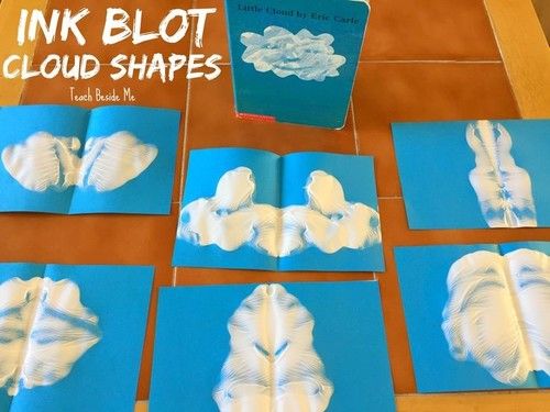 A fun, simple cloud craft is to paint on a folded piece of paper. Use white paint on blue paper to make it realistic as the sky and clouds, or other colors for fun. Paint any shape or blob on one side of the folded paper; paint from the fold out. After painting, fold the paper, rub the paint around, and open up to see the shape of the cloud.